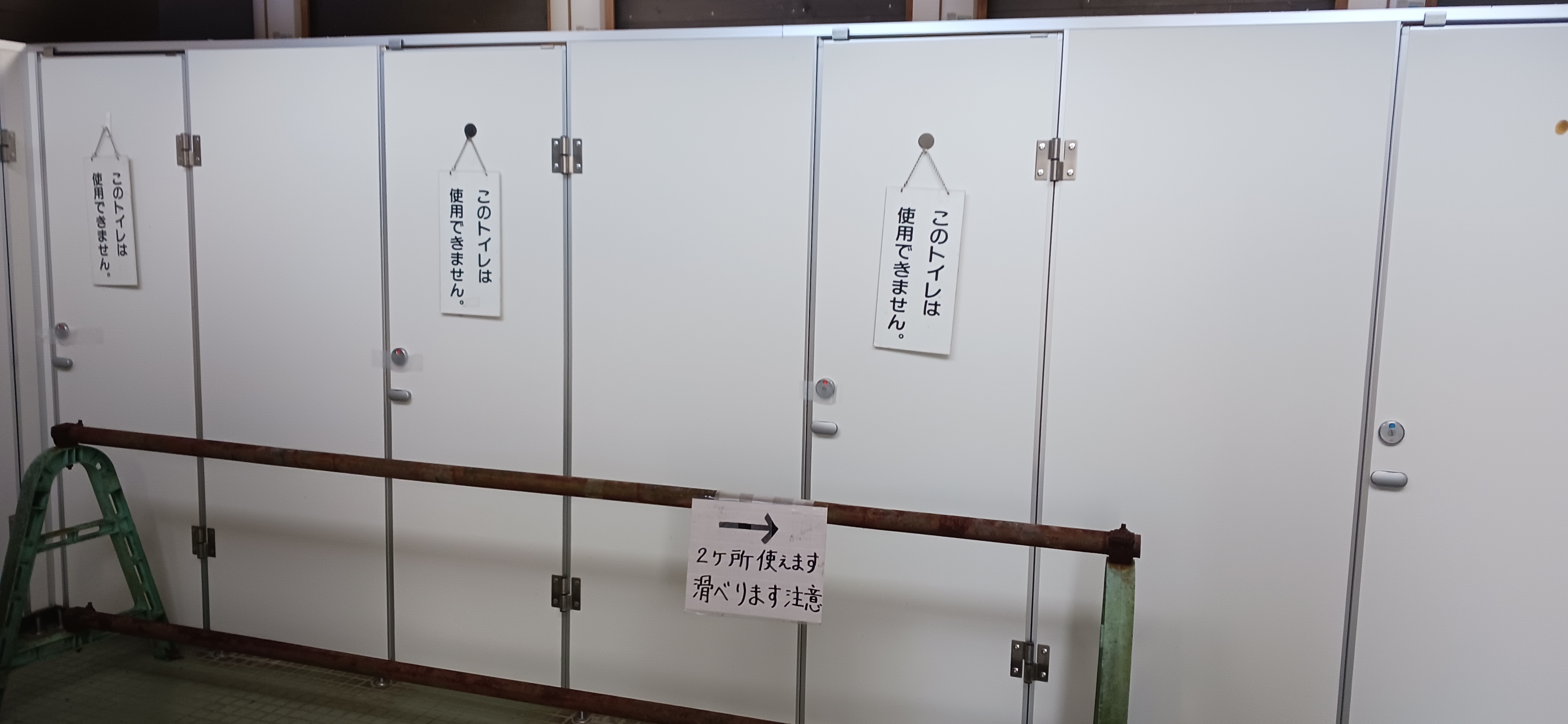 女子トイレが、5つうち3つが使用不可になっており、使えるのは2つだけでした